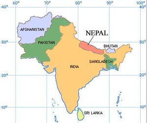 Subcontinent map of India, Pakistan, Nepal, Bhutan, Bangladesh, Sri ...